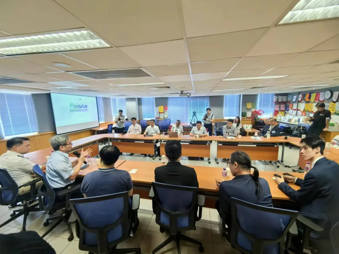 6⽉26⽇,中國⾃動化學會「科普百⼈團」的專家們來到⾹港,參加了在⾹港舉⾏的「⾹港中⼩學⼈⼯智能教育交流會」。 「科普百⼈團」的熊璋教授、劉希未博⼠,以及深圳市⿓華未來教育研究院執⾏院⻑、廣東省中⼩學名教師⼯作室主持⼈⿈秉剛⽼師出席了當天的 活動,⾹港科技⼤學電⼦及計算機⼯程學系的胡錦添教授、⾹港樹仁⼤學中國語⾔⽂學系陳健榮教授、⾹港學界體育聯會荃灣及離島區中學分會執⾏委 員會主席植⽂顯校⻑,以及多所學校校⻓和主任參加了本次交流會。亞州創科藝術教育協會創會會⻓及主席彭善檒主持會議。
