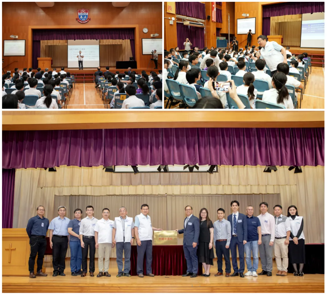 「科普百⼈團」的專家代表中國⾃動化學會向中華基督教會基法⼩學(油塘)授予「⻘少年⼈⼯智能核⼼素養測評(AICE)共建示範校」牌匾。 隨後,熊璋教授和劉希未博⼠為與會的師⽣們做了專家報告。